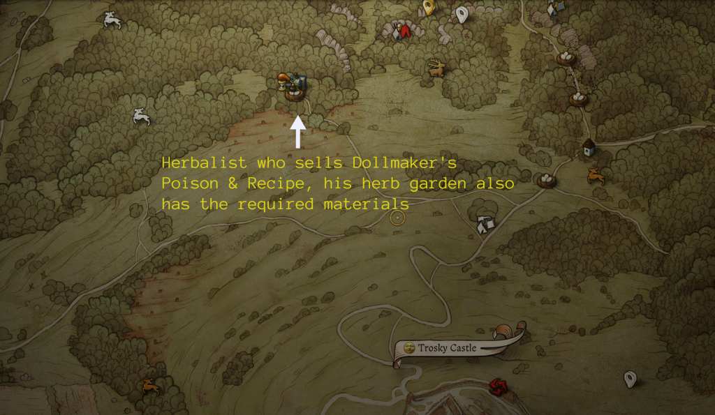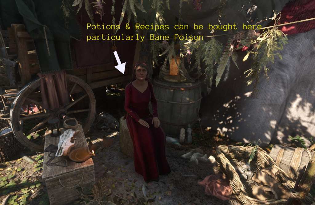 Poisons are always good to have on hand for added debilitations and damage over time effects. These can either be bought or crafted yourself. Recipes can be purchased for Bane Poison (High Damage Poison) and Dollmaker’s Poison (Prevents Running + Deals Damage Over Time) from the Nomad Camp or from the Herbalist North of Trosky Castle.